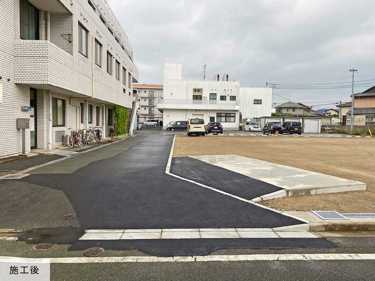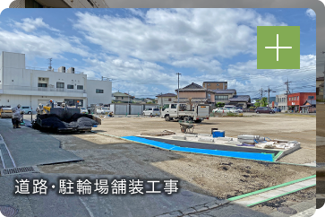 アスファルト舗装、コンクリート舗装、舗装の色を変えたり、水たまりをできにくくさせたりする特殊舗装もお任せください。