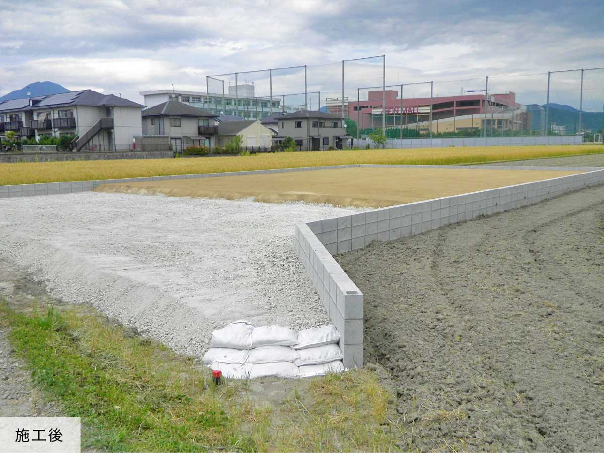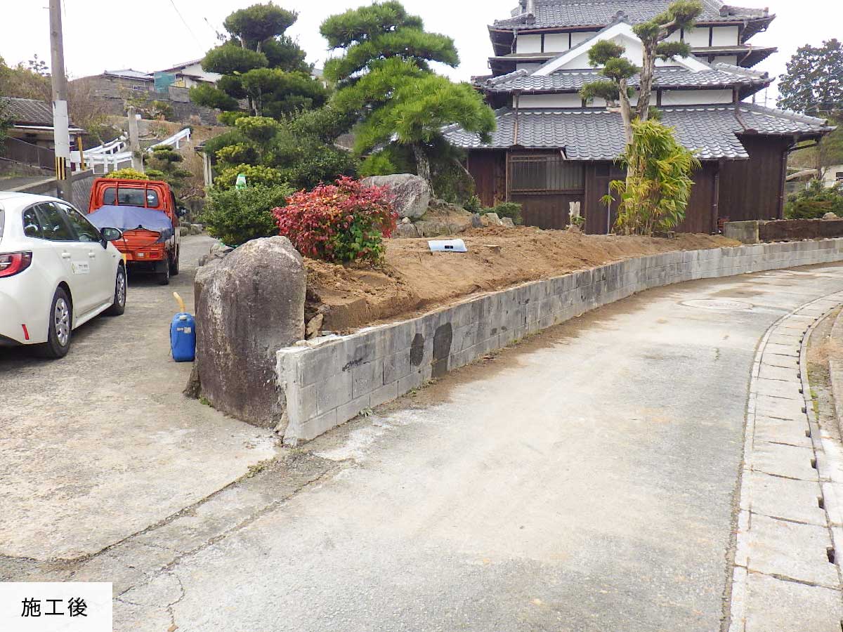 福岡県・宗像市など行政府からの大規模な公共工事から、個人宅。石積み・擁壁を伴う工事まで幅広く対応しています。