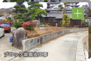 ブロック塀・庭石の撤去や庭木の伐採、公園の整備、個人宅の一部改修など何でも気軽にお声がけください。産廃リサイクルも一貫して弊社で対応できます。